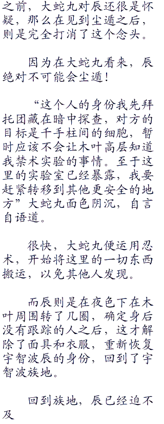 在知道辰会血继淘汰之后,大蛇丸便对辰忌惮无比。