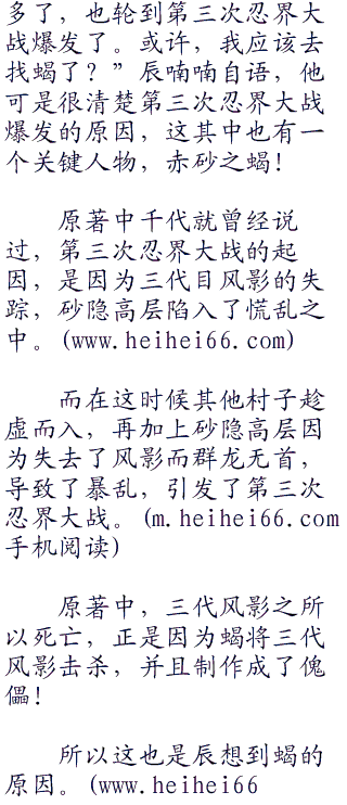 距离第三次忍界大战,神无毗桥之战也只有一年左右的时间,在这一年里要“八八七”发生太多事情,辰也要做好准备。