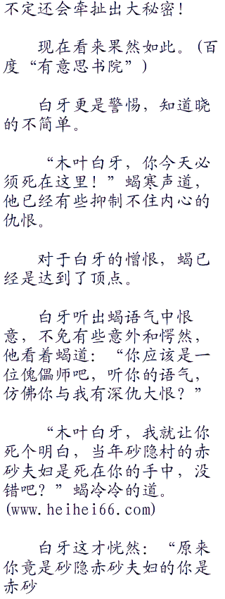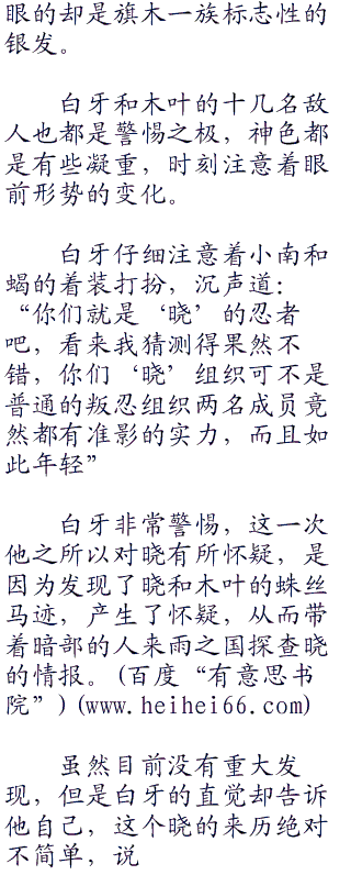 白牙的声音传来:“刚才吉木在临死前可是说了,有两名敌人查克拉的气息。我在探查之下,发现地底还有一丝微弱的查克拉,就知道你藏身在地底了。”