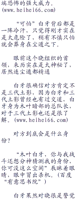 晓组织的首领,居然还精通尘遁。看来对方即使不是三代土影,也与三代土影有某种关联白牙躲避之余,心念急转。