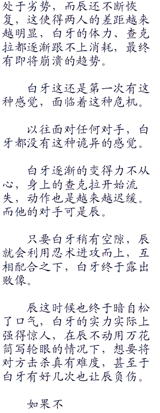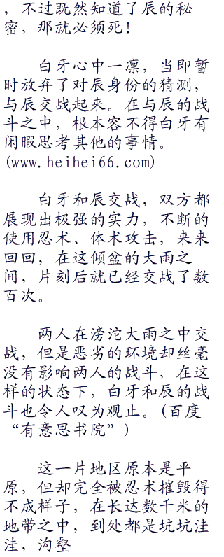 白牙拼死躲开,利用秘术状态下的瞬身躲避了辰的尘遁一击。