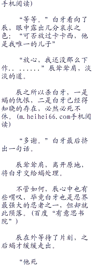 “我知道我的下场。”白牙勉强一笑:“不过宇智波辰,我很想问问,这是为什么?”