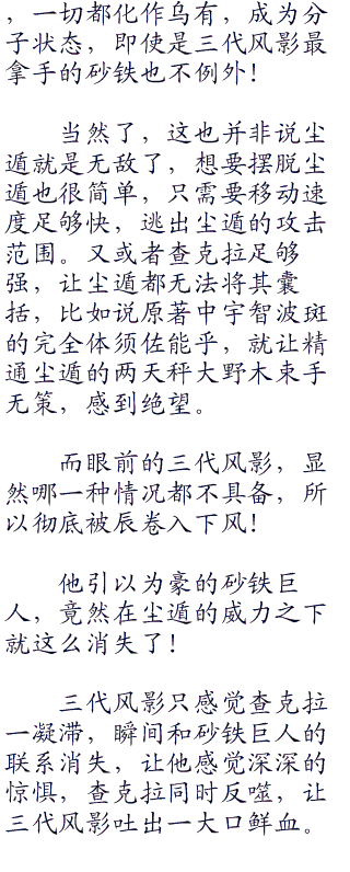 呼呼的风声遮掩了一切,到处都是猎猎作响,狂风席卷,在这样的恶劣环境之中,似乎极利于砂隐的忍者战斗。