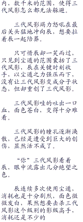 刚才辰虽然是偷袭,但是却利用尘遁迅速的让三代风影受伤,占据了优势,主动权已经完全掌握。