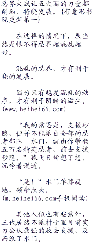 辰等人都是微微点头,辰的表情更是轻微变化,看来木叶即将正式卷入第三次忍界大战!