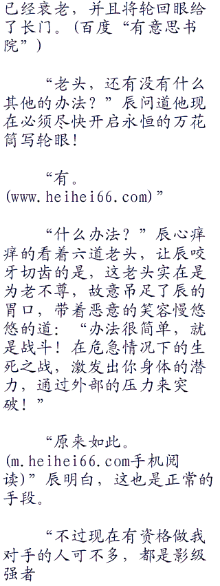 “恩,其实以你的天赋,应该早就能激发阳遁,从而开启永恒的万花筒写轮眼了。不过你一直缺少一个开眼的契机。”六道老头道。