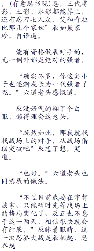辰找到一处安静的地方,与六道仙人交流着。首发
