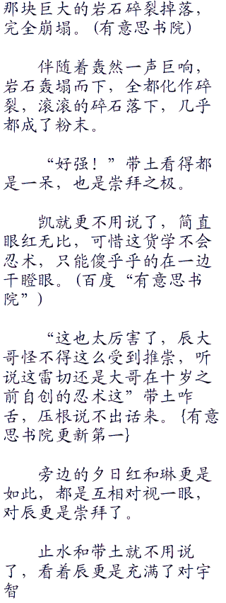 辰身形一动,猛地利用瞬身之术,到这块岩石面前,之后雷切突刺而出!