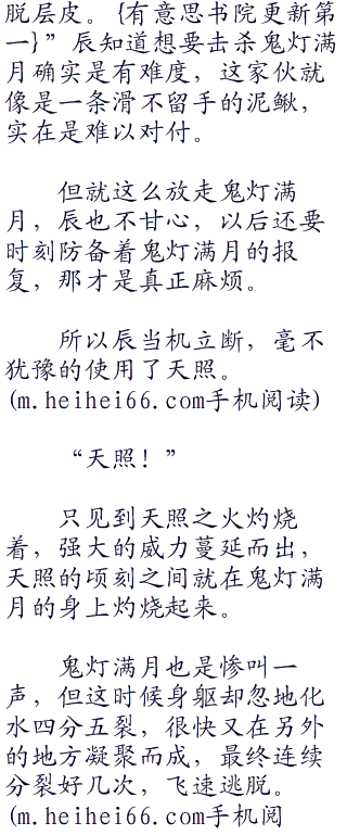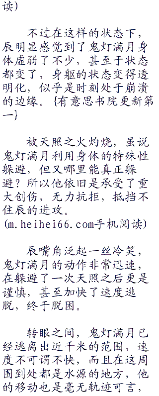 “这是”辰眯着眼睛,知道鬼灯满月又再次利用鬼灯一族的特殊体质液化来逃脱。