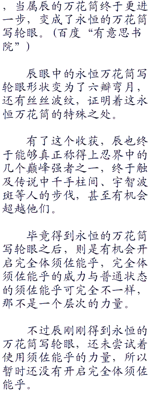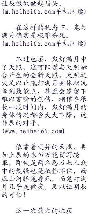 辰对天照与阳遁产生的性质变化很满意,两者结合产生的天照威力非常强,超越了之前的黑炎。