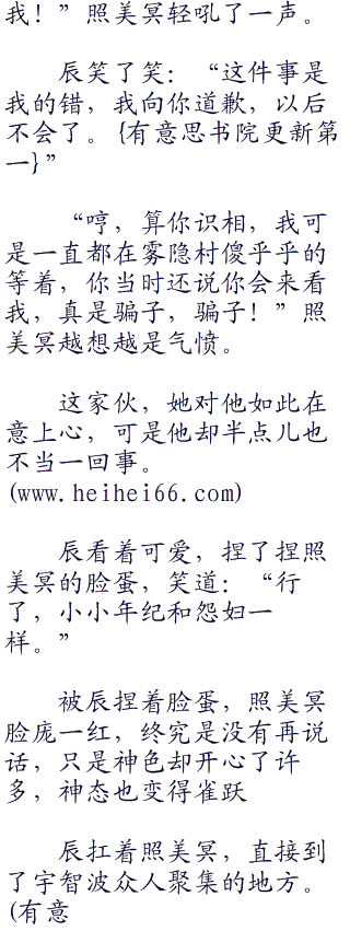 辰笑了笑,这丫头十三岁居然还是这样可爱,真是让辰感觉动人。