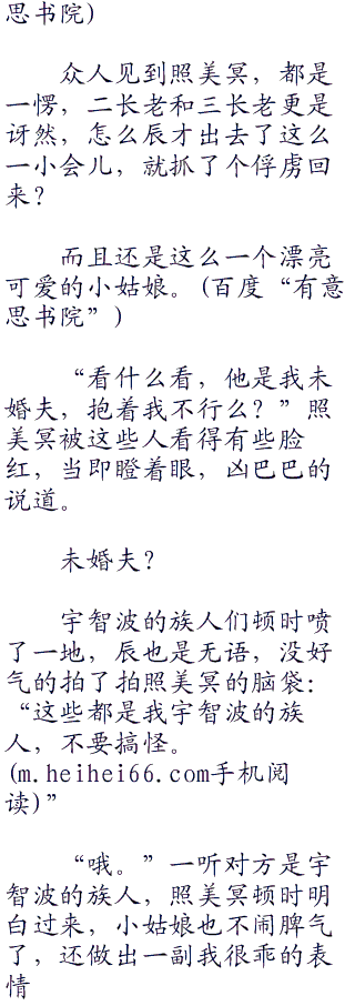 辰一愣,当初与照美冥的约定,是说日后结婚的约定。那时候的照美冥才八岁,辰当然不在意。