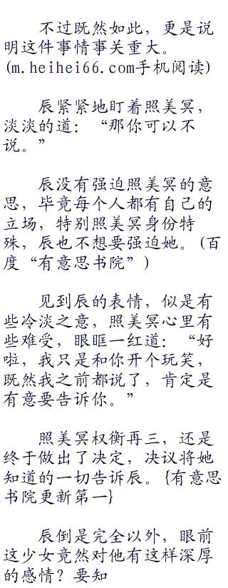 不过事已至此,倒也没办法。再说辰原本对照美冥就有几分亏欠。