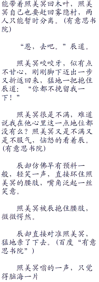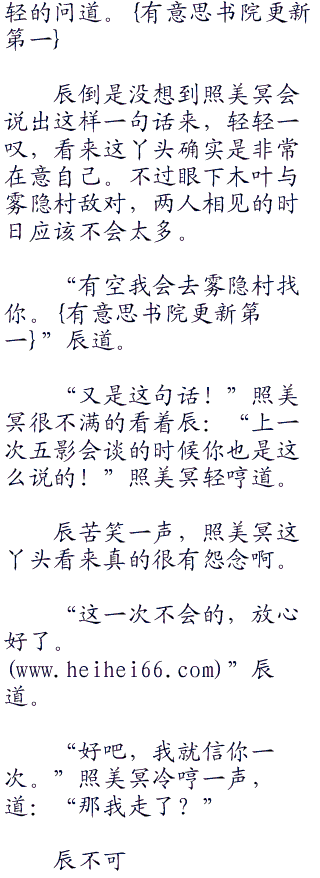 “可是我以后怎样才能见到你?”照美冥看着辰,一双眼睛仿佛会说话的星辰,轻