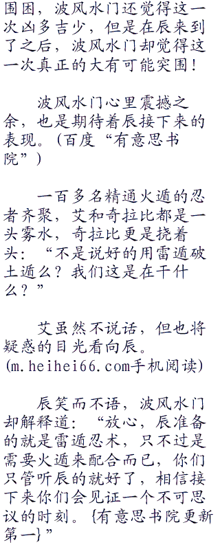 “恩,这是一个问题,而且对方还有很多精通结界忍术的忍者,再加上土遁,我们未必能占据优势。有意.思书院首发”波风水门也分析道。