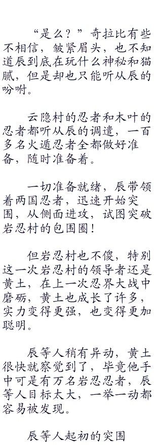 艾和奇拉比当然不知道,只是疑惑辰这到底是什么忍术,看起来好像很厉害的样子,而且辰也十分有信心。