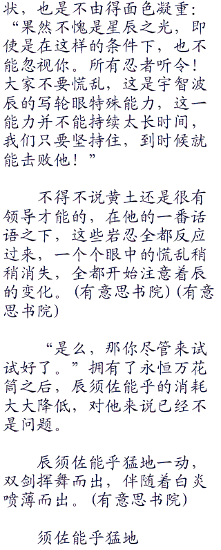 即使是辰率领众人从侧面突围,但也已久被察觉,毕竟双方可是相差了近十倍的忍者数量,差距实在是太大了一些。