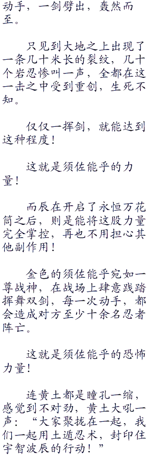 黄土轻哼一声,看了看周围近万名的岩忍,心中大定,道:“辰,我知道你很强,战场上的星辰之光嘛,只怕是我父亲与你一战,也未必敢说一定能够胜利。但眼下形势可全然不同,即使是你再强,也不可能从我手下这一万名忍者中突围!”