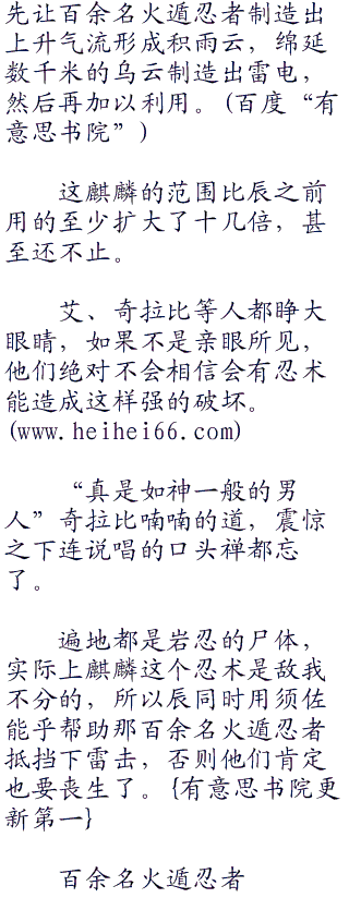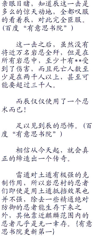 “是啊,真是不可思议的忍术,大自然中的雷电力量,带给人太多的惊讶了,这就是星辰之光么。”艾也是无法言喻。