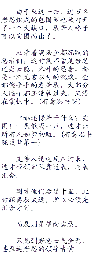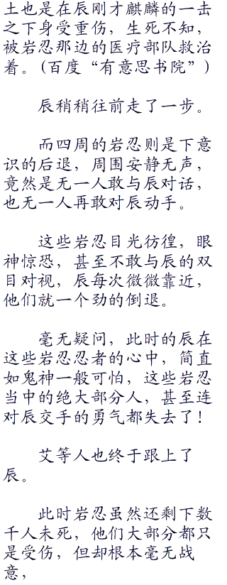 “他他他还是人么,连传说中的麒麟神兽都听从他的命令”一个岩忍喃喃自语,表情崩溃。
