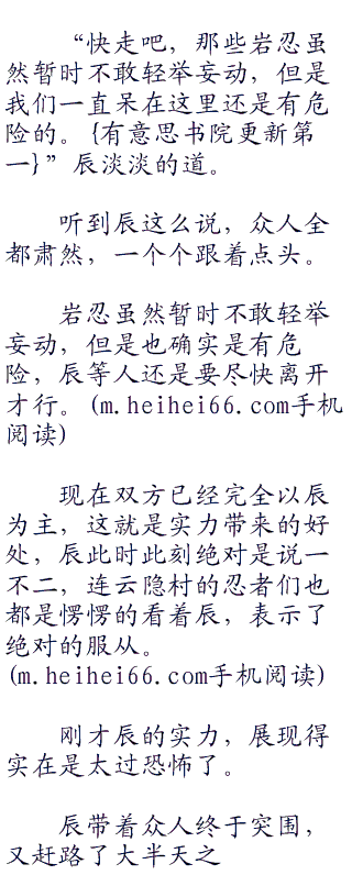 至于周围的那些岩忍,不但不敢阻拦辰,甚至还都老老实实的为辰让路,场面极其诡异。