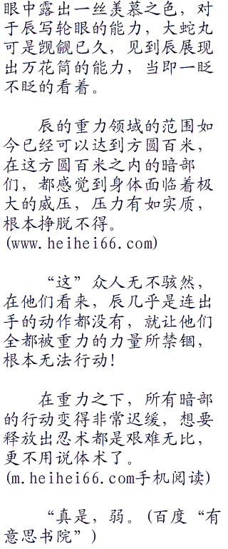 辰的目光扫过,充满不屑:“如今的木叶真是让我失望,堂堂暗部居然沦为他人掌控的爪牙”