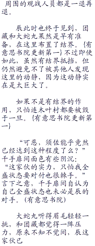 “大言不惭,宇智波辰,你就算实力再强,也未必是传说中忍者之神的对手吧。更方便hei.”大蛇丸倒是显得很有自信,他准备了两个符咒,将符咒放入初代火影和二代火影的脑后,准备借用符咒来控制两人的行动。