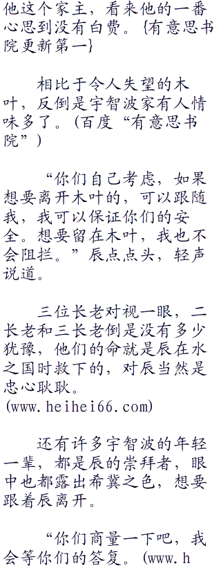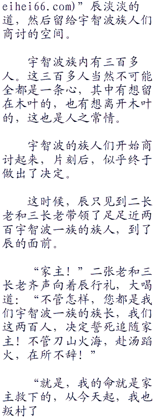辰当然也不会让宇智波的族人强行跟着他离开木叶,不过只要族人愿意,他就不会辜负宇智波冥临死前的嘱托。