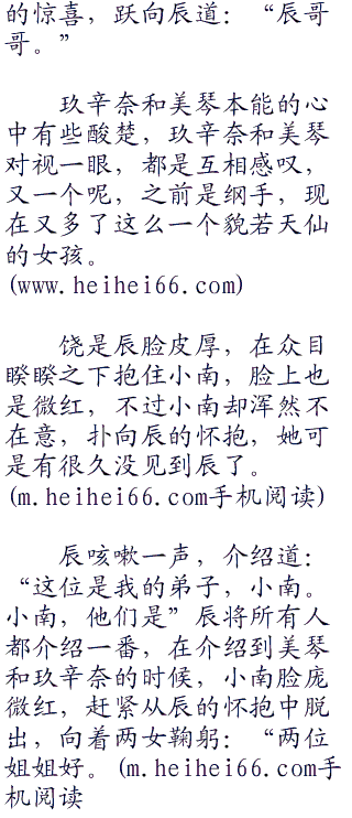 “倒不过纲手老师居然喜欢你呢。”玖辛奈则是意外,完全没想到纲手和辰之间的事情。