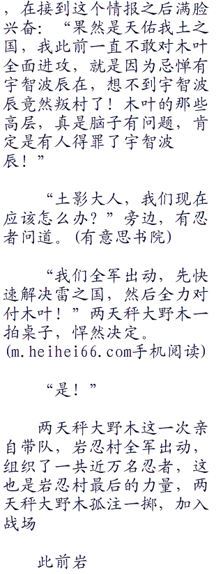 辰说完这一切,便笑道:“从今天起,我们改变晓的策略,所有人听我行动。”