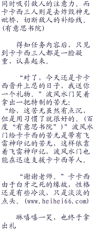 “从今天起,卡卡西和我一样是上忍了。”波风水门听到辰的名字,勉强一笑,思绪好不容易拉回,只是道:“为了这一次任务的效率,我决定和卡卡西分成两组行动。因为木叶的战斗力从来没有像是现在这样不足,这一次,哎”