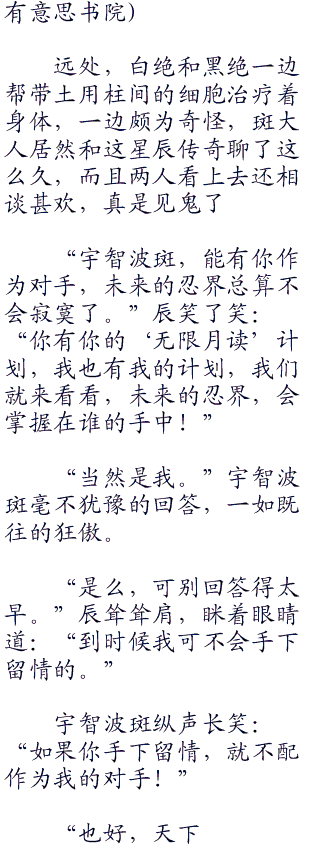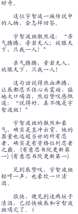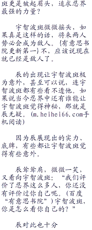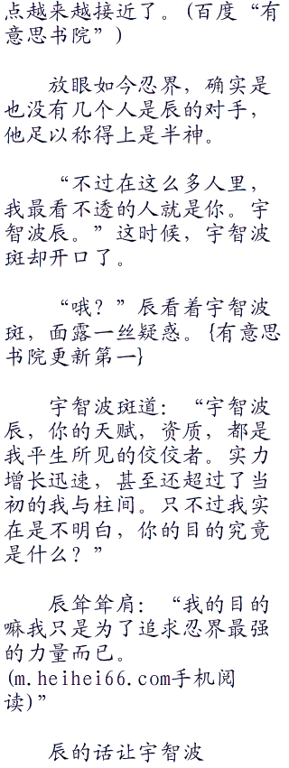 辰在最近一段时间内见到两人,也同样是热血涌动,如今的他,终于有资格站在忍界的顶点,去追逐,甚至去超越这两人的脚步!
