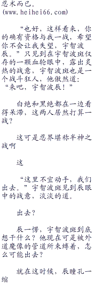 “能让宇智波斑这样称赞,真是难得。”辰微笑道。