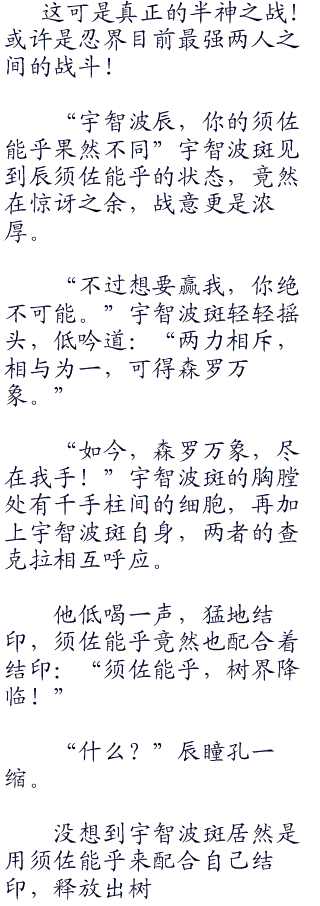 黑绝迅速到了地面,只见到宇智波斑和辰远远的对立。