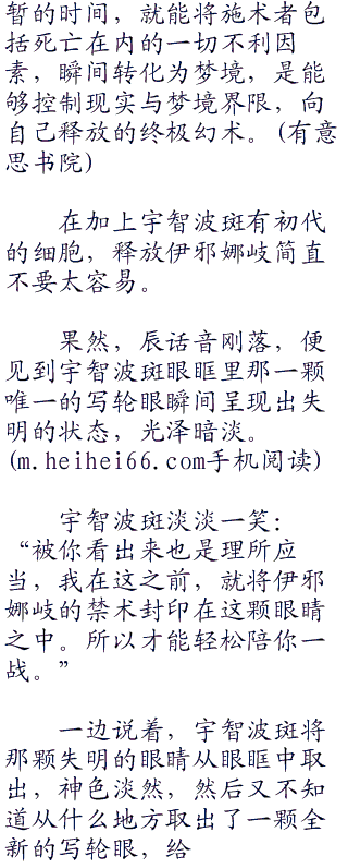 “果然是那个禁术么”辰还是第一次接触到这个宇智波一族的最强禁术之一,心中也有了兴致,身形瞬闪,回到宇智波斑所处的地洞。