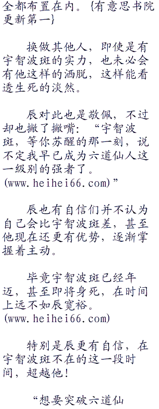 “宇智波斑,在带土接受你的掌控之后,你就要面对死亡了吧。<a href="hei." target="_blank">hei.</a>”辰道。