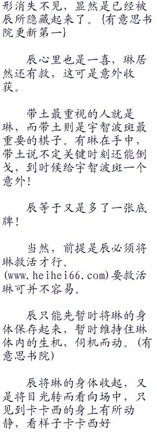 辰却松开抱着的照美冥,俯下身查探着琳的状况,猛地,辰的眼睛微微一亮。