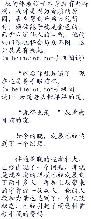 辰如今的力量也达到了瓶颈,想要再进一步,那就是得到轮回眼,或者修行仙术!