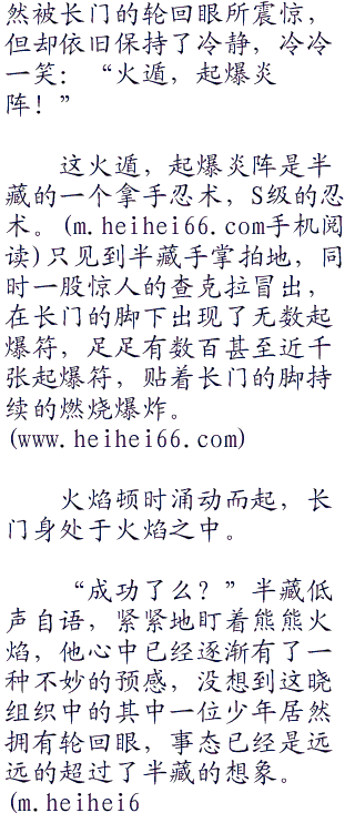 “错不了,这绝对是轮回眼!”半藏也是见多识广,当然知道轮回眼的传说,当下确认长门的眼睛就是传说中的轮回眼。
