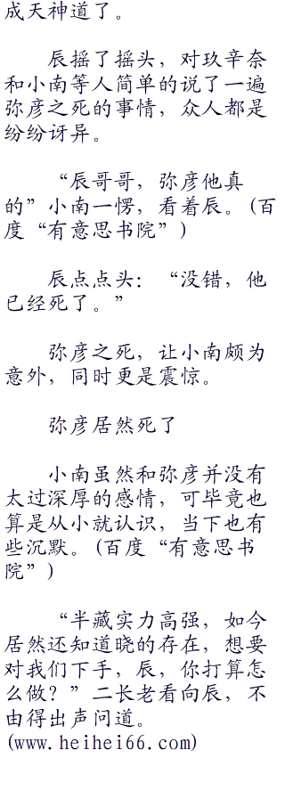 辰看了看弥彦的尸体,蹲下身子,发现弥彦的尸体甚至已经是微微发凉了,不由得摇头道:“没办法,弥彦已经死了…”
