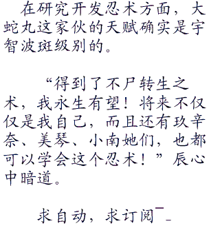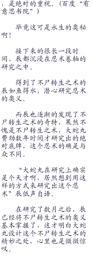 拿到了不尸转生之术,辰迅速回到雨之国。
