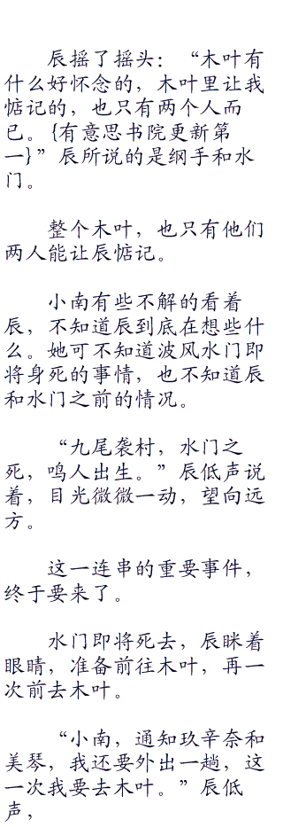 不管是九尾还是水门,对辰来说都很重要,辰想了想,自己还和九尾曾经有一个约定呢。