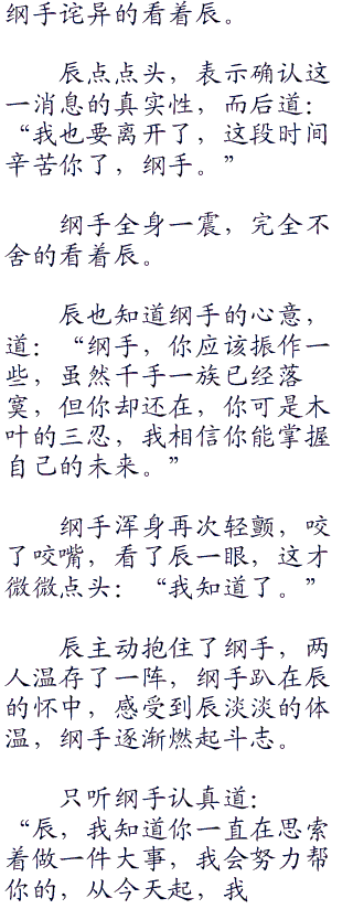 辰不打算和木叶的人碰面,对辰而言,木叶只有纲手和水门两人,最多再算上猪鹿蝶,仅此而已。