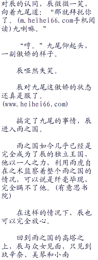 辰也乐得九尾这样,他对九尾的性格也是越来越了解了。