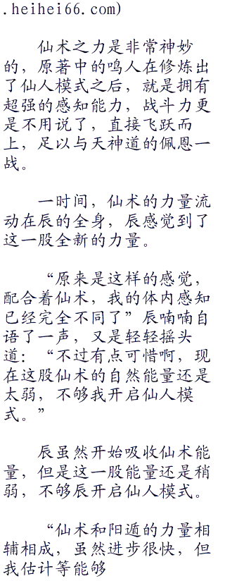 辰在听到深作的讲话之后,脑海中对仙术有了初步的印象。同时利用自己强大的忍术知识和实力,逐渐的对仙术分析,脑海中明晰,知道了应该怎样掌握仙术。