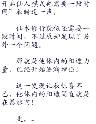 不过以辰目前的实力,这倒不是问题。更何况他是要激发体内的阳遁力量来吸收自然能量,与普通仙术不太相同,可以避免这一点。