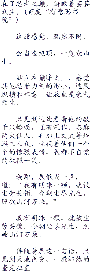 同时,辰的查克拉疯狂的涌动起来,一股有一股强大的查克拉冲天而起,力量也是不言而喻的可怕。