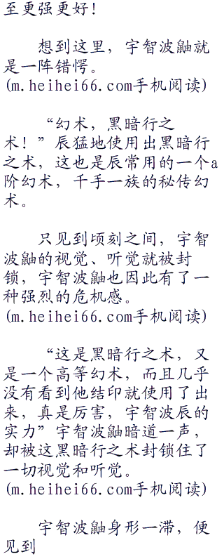 由于幻术之间的对决只有当事人才能知道具体的情况,所以他们都不清楚辰与宇智波鼬到底是什么情况,但却又都感觉到了那股凝重的气氛。更方便hei.