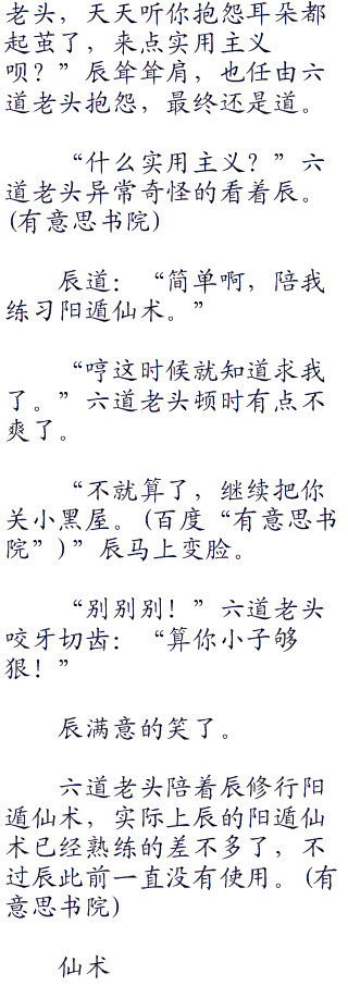 辰二话不说直接又将六道老头关到小黑屋,免得听这老家伙啰嗦。