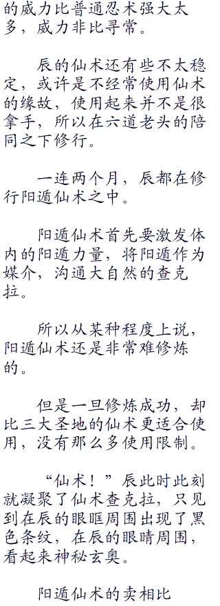 想到这里,六道老头赶紧制止了辰,不让辰将这个忍术泄密出去。否则整个忍界就全乱了。